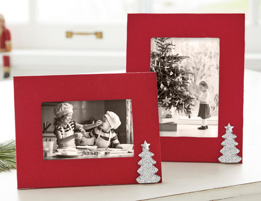Red Linen with Silver Christmas Tree 4x6 Picture Frame